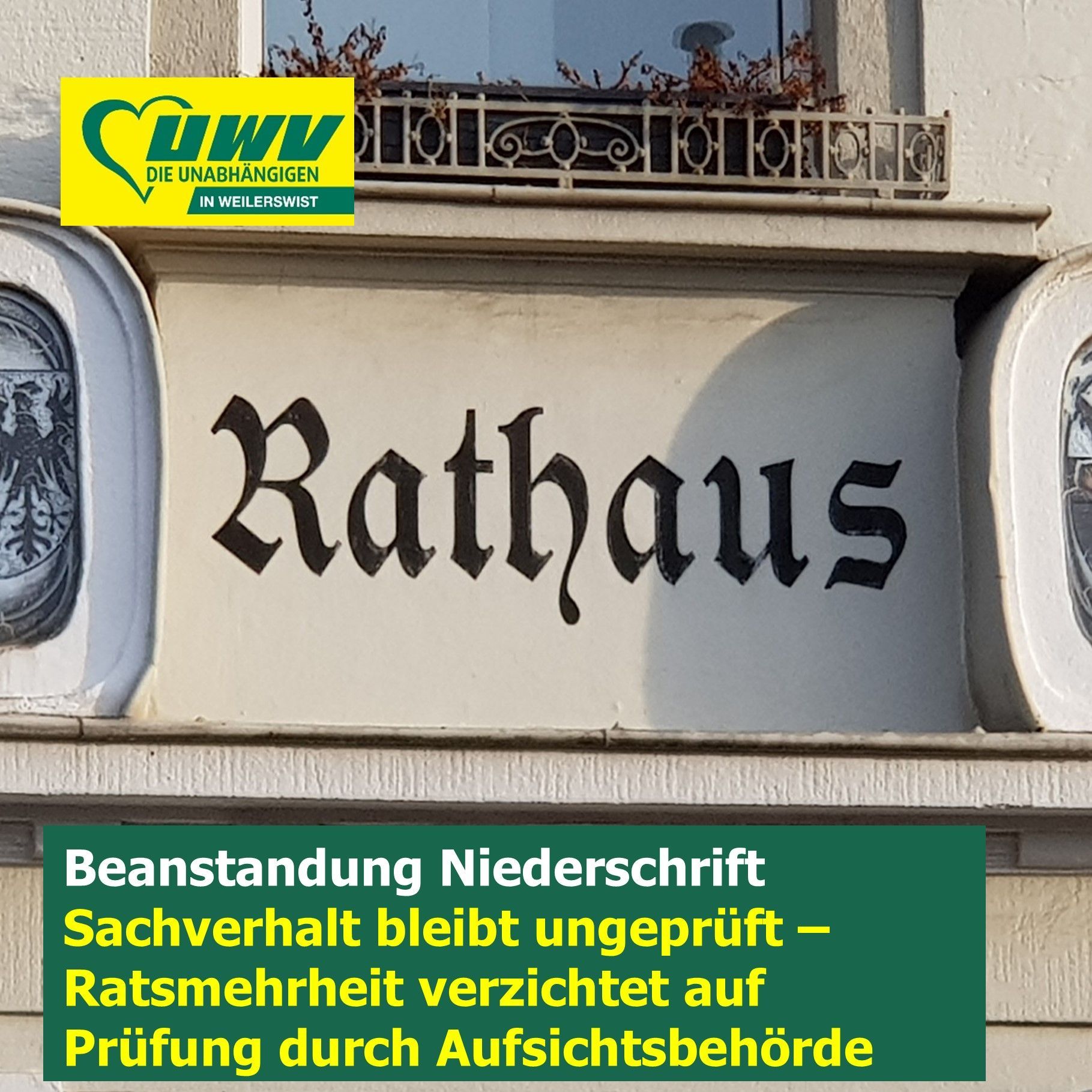 Beanstandung Niederschrift Sachverhalt bleibt ungeprüft – Ratsmehrheit verzichtet auf Prüfung durch Aufsichtsbehörde