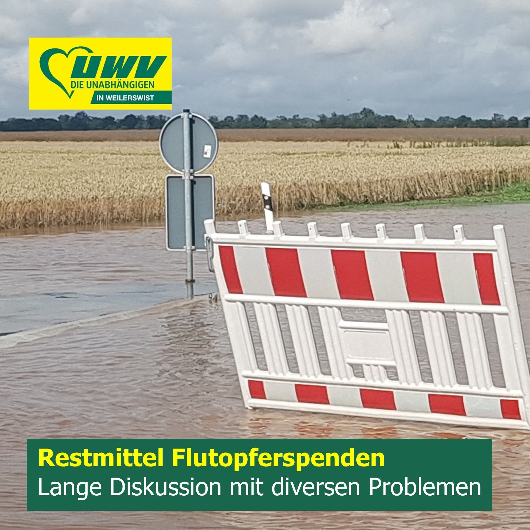 Die Gemeinde verfügt noch immer über eine Restsumme von 34.343,32 € aus den Spenden für die Opfer der Flut im Sommer 2021. Die UWV zeigt sich angesichts des bisherigen Umgangs mit dieser Restsumme mehr als verärgert.