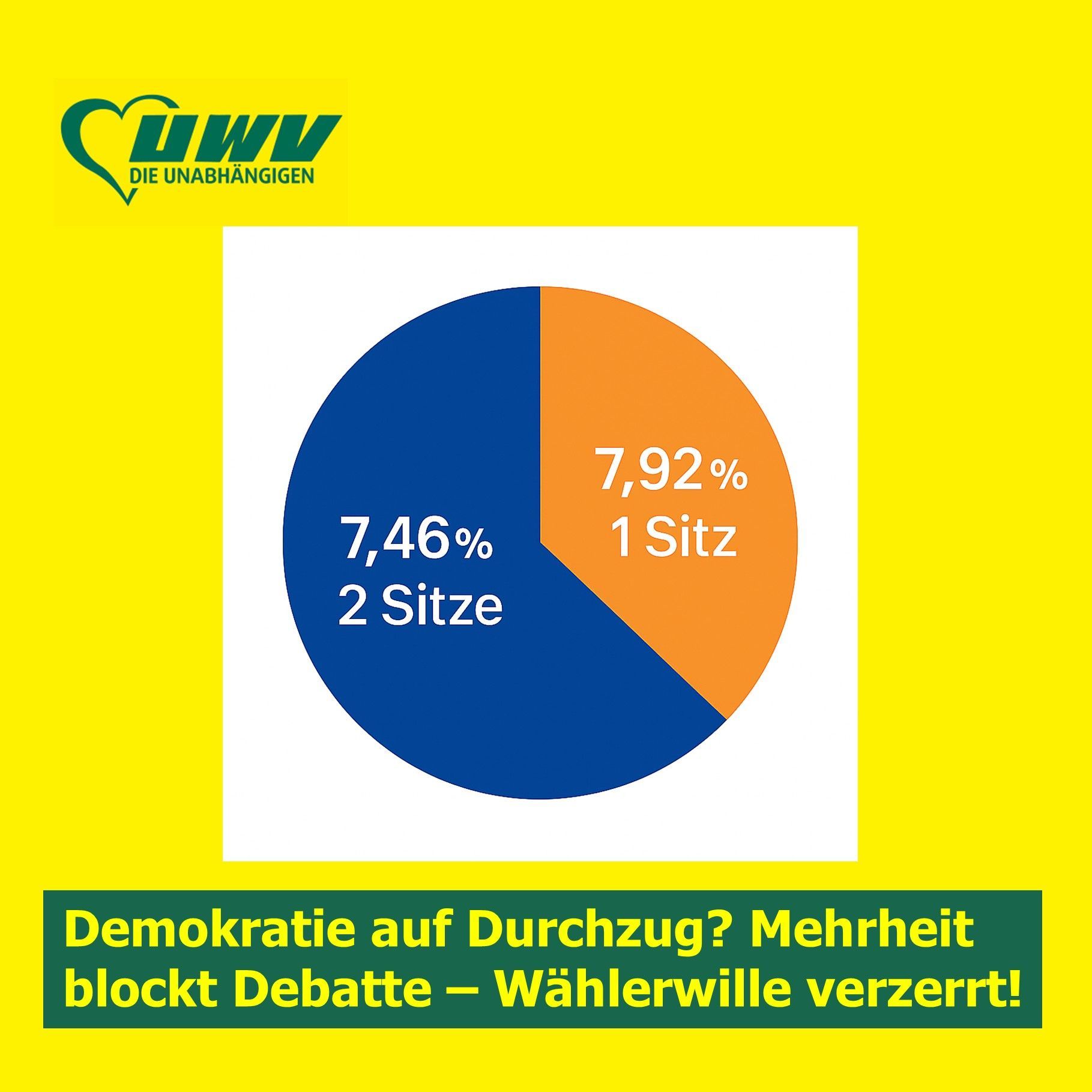UWV kritisiert Ausschussbildung: Fehlende Transparenz, verzerrte Mehrheitsverhältnisse und abgewürgte Debatte