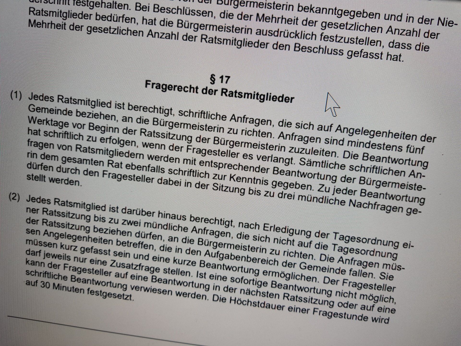 Wenn der Rat Gesetze macht – Satzungsrecht in der Kommune (Teil 1)                                                      Oder: Warum man manchmal Parkgebühren zahlen muss, obwohl das gar nicht im Bundesgesetzbuch steht                                                                                                            Was viele nicht wissen: Kommunen dürfen selbst kleine „Gesetze“ erlassen. Diese heißen nicht „Gesetz“, sondern Satzung – sind aber für Bürgerinnen und Bürger genauso verbindlich wie die „großen Regeln“ aus Berlin oder Düsseldorf.                                                                                                            Was ist eine Satzung eigentlich?                                                      Satzungen sind das, was der Gemeinderat auf Basis von §  7 GO NRW beschließen darf – und was dann für das Gemeindegebiet Rechtsverbindlichkeit entfaltet. Klingt hochtrabend, bedeutet aber ganz praktisch:                                                                  Wenn deine Gemeinde beschließt, dass du für die Nutzung der Kita zahlen oder deinen Vorgarten nicht komplett zuplastern darfst – dann steht das in einer Satzung.                                                                                                            Gesetzgeber auf Dorfebene?                                                      Ja, genau. Der Gemeinderat ist auf kommunaler Ebene der Gesetzgeber – zumindest in seinem Zuständigkeitsbereich. Dazu gehören zum Beispiel:                                                                   Gebührensatzungen (z. B. Müll, Wasser, Friedhof),                                                           Bebauungspläne (per Satzung nach BauGB),                                                           Hauptsatzung,                                                           oder Ordnungsregelungen.                                                                                                                        Was darf geregelt werden?                                                      Grundsätzlich: alles, was dem eigenen Wirkungskreis der Kommune unterliegt – also das, was sie eigenständig und ohne Weisung von oben regeln darf.                                                                   Grenze: Das Satzungsrecht muss im Rahmen der Gesetze bleiben. Die Kommune kann also nicht plötzlich Tempo 25 auf der Bundesstraße einführen oder Feiertage abschaffen.                                                                                                 Formalitäten? Natürlich!                                                      Eine Satzung entsteht nicht durch Handzeichen im Hinterzimmer. Sie muss:                                                                   vom Rat mehrheitlich beschlossen werden,                                                           ordnungsgemäß bekanntgemacht werden (§  7 Abs. 4 GO NRW),                                                           schriftlich vorliegen,                                                           und inhaltlich klar und bestimmt sein – Juristen sagen: „bestimmtheitsgebotstreu“.                                                                               Und wenn’s fehlt? Dann ist die Satzung möglicherweise nichtig – und das kann richtig teuer (und peinlich) werden.                                                                                                 Klassiker aus dem Alltag                                                      Du wunderst dich, warum auf deinem Gehweg im Winter gestreut werden muss – und zwar um 7 Uhr morgens? Schau mal in die Straßenreinigungssatzung deiner Kommune.                        Oder warum auf manchem Balkon kein rosa Pavillon erlaubt ist? Willkommen im Reich der Möglichkeit von Gestaltungssatzungen.                                                                                     Fazit Teil 1:                                  Satzungen sind das kommunale Rückgrat vieler Alltagsregeln – oft unauffällig, aber mit großer Wirkung. Und: Sie gelten, auch wenn man sie nicht gelesen hat. (Sorry.)